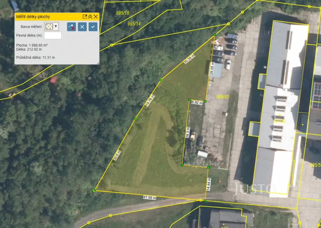 Přibližná plocha pozemku je cca 1688 m², přičemž dle dohody je možno jeho velikost upravit dle požadavku kupujícího. Jednotková cena je 1 500 Kč/m² bez DPH.