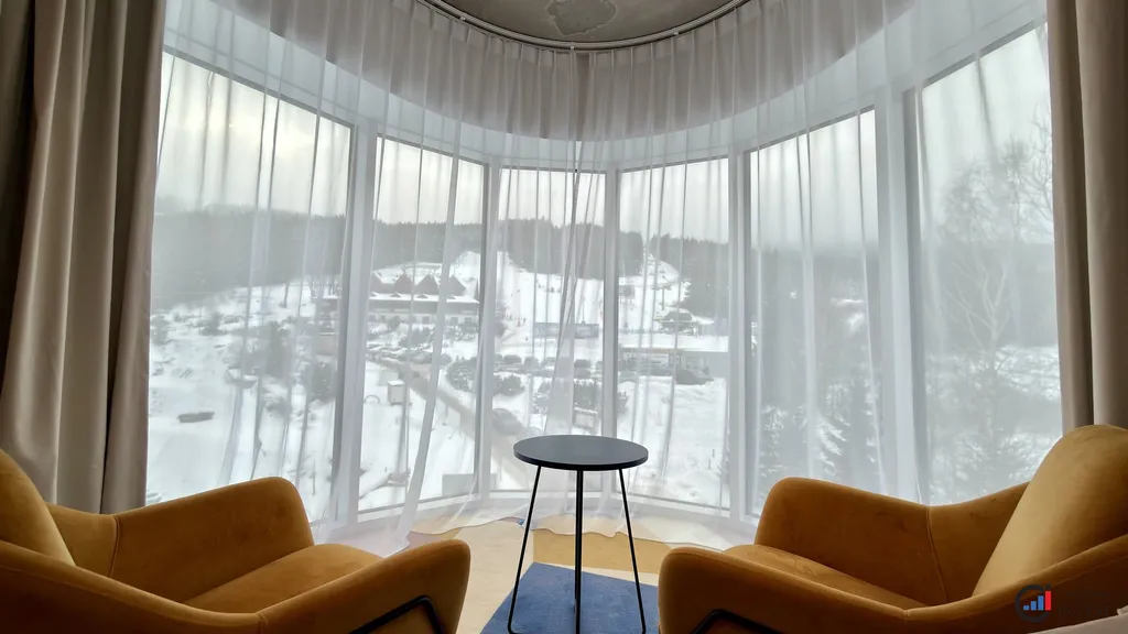 Na tomto krásném místě vám nabízíme apartmán o rozloze 49,08 m² sestávající z obývacího pokoje, ložnice, předsíně a prostorné koupelny se sprchovým koutem i vanou. Apartmán s panoramatickým, zakřiveným prosklením od podlahy ke stropu nabízí krásné výhledy na celý areál. V okolí se nachází restaurace, půjčovny sportovního vybavení a SPA zóna.
