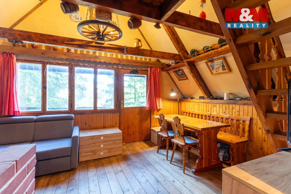 Nabízíme Vám ke koupichatu nad srázem, obklopenou přírodou v Seči u Lipové, vhodnou jak k trávení volného času, tak trvalému bydlení. Do chaty je zavedena elektřina a obecní vodovod, odpad je řešen jímkou s přepadem do trativodu a vytápění krbovými kamny na tuhá paliva. Dispozice sestává ze tří podlaží, kde ve spodním, s vlastním vstupem je společenská místnost, či dílna s vlastním kamenným krbem. Ve druhém obývací pokoj s krbovými kamny a vstupem na balkon, kuchyň s kuchyňskou linkou a koupelna vybavená sprchovým koutem, WC a umyvadlem. V nejvyšším podlaží, přístupném po schodišti z obývacího pokoje je potom ložnice. pod podlahou v koupelně je prostor ukrývající elektrický bojler pro ohřev teplé vody. Chata stojí na vlastním pozemku, okolní je využíván se souhlasem obce. Parkování je u hlavní cesty, cca 200m od samotné chaty. K atmosféře a okolí chaty nejspíše není co dodat, podívejte se na fotografie a video. Pro více informací, či domluvení prohlídky kontaktujte makléře.