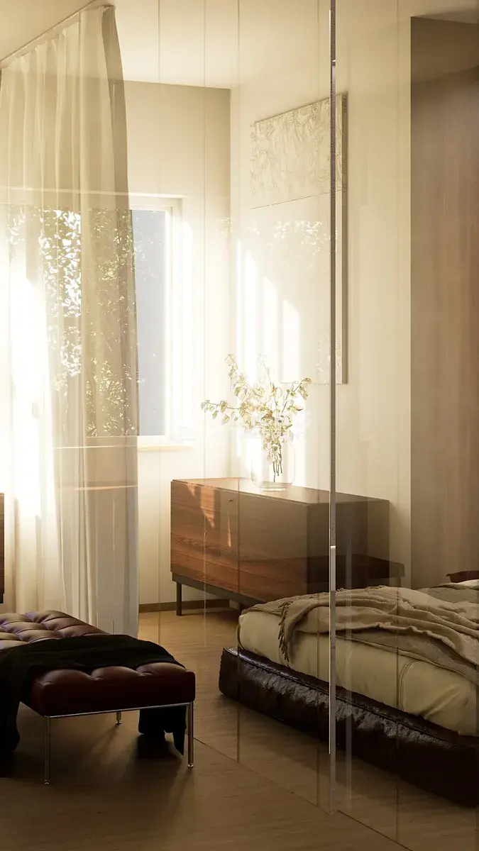 Bytová jednotka bude dokončena ve vysokém standardu, který zahrnuje kvalitní sádrové omítky, ambientní osvětlení a interiérové žaluzie. Koupelna nabídne podlahové vytápění, praktické niky ve sprchovém koutě a sanitu značky Laufen. V rámci klientských standardů je možné zvolit místo zděných příček elegantní skleněné příčky z velkoformátového kaleného skla od společnosti Jakes Glass, které dodají interiéru vzdušnost, více světla a pocit luxusu.