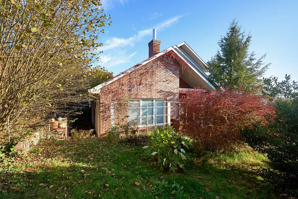 V krásné rozlehlé zahradě je altán a kůlna na nářadí.