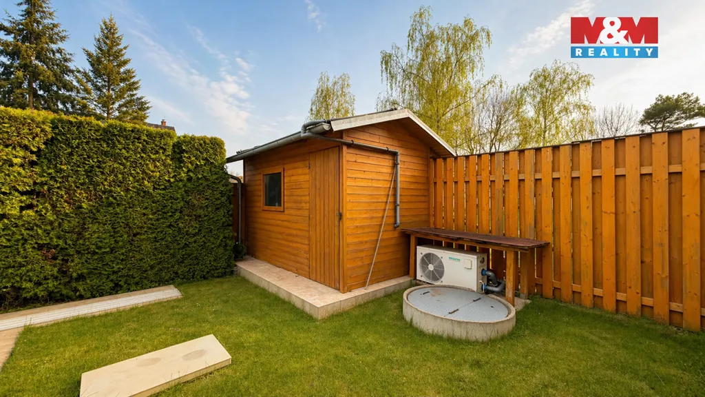 Velkou předností je možnost využití soukromé zahrady o výměře 350 m², kde se nachází bazén (3,5 × 7,5 m), pergola pro příjemné posezení a garáž o velikosti 24,5 m².