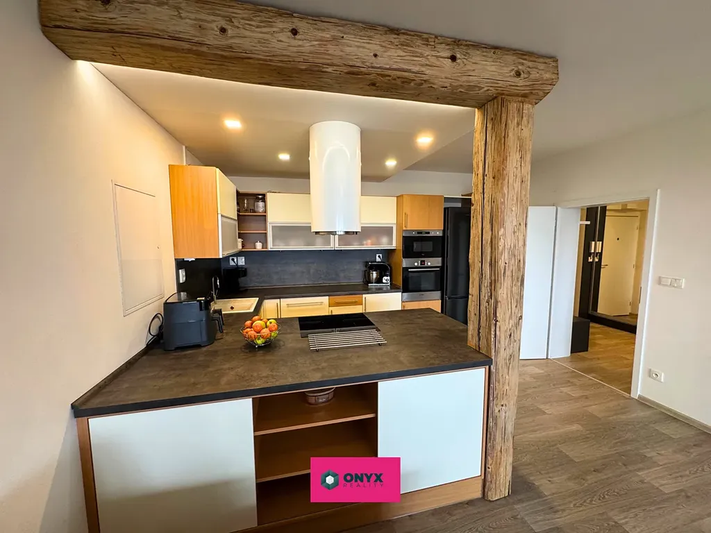 Dominantou bytu je prostorný obývací pokoj s kuchyní na míru o velikosti 38 m², který přirozeně propojuje interiér s venkovním prostorem. Na obytnou část navazuje terasa a zahrada, která poskytuje dostatek soukromí, prostoru pro relaxaci, rodinné posezení i děti.