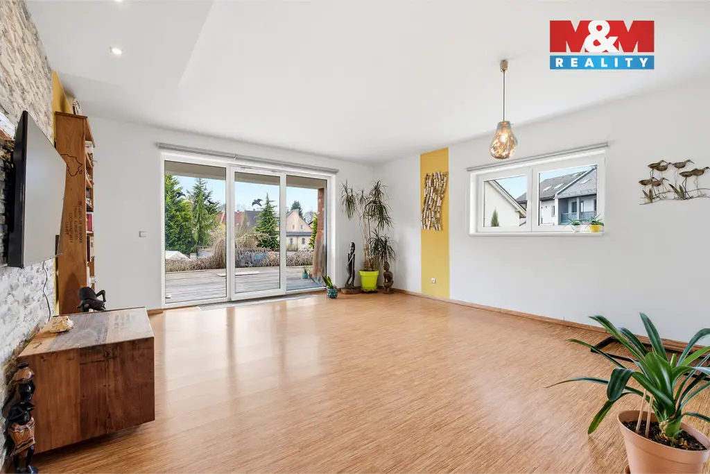 Hlavní obytný prostor je propojený s kuchyní a terasou, takže většina dne se přirozeně odehrává právě tady. Horní podlaží nabízí otevřený prostor s atypickými výhledy, ideální jako klidová zóna, pracovna nebo ateliér. Suterén rozšiřuje možnosti využití – fitness, zázemí pro podnikání nebo samostatnou pracovnu.