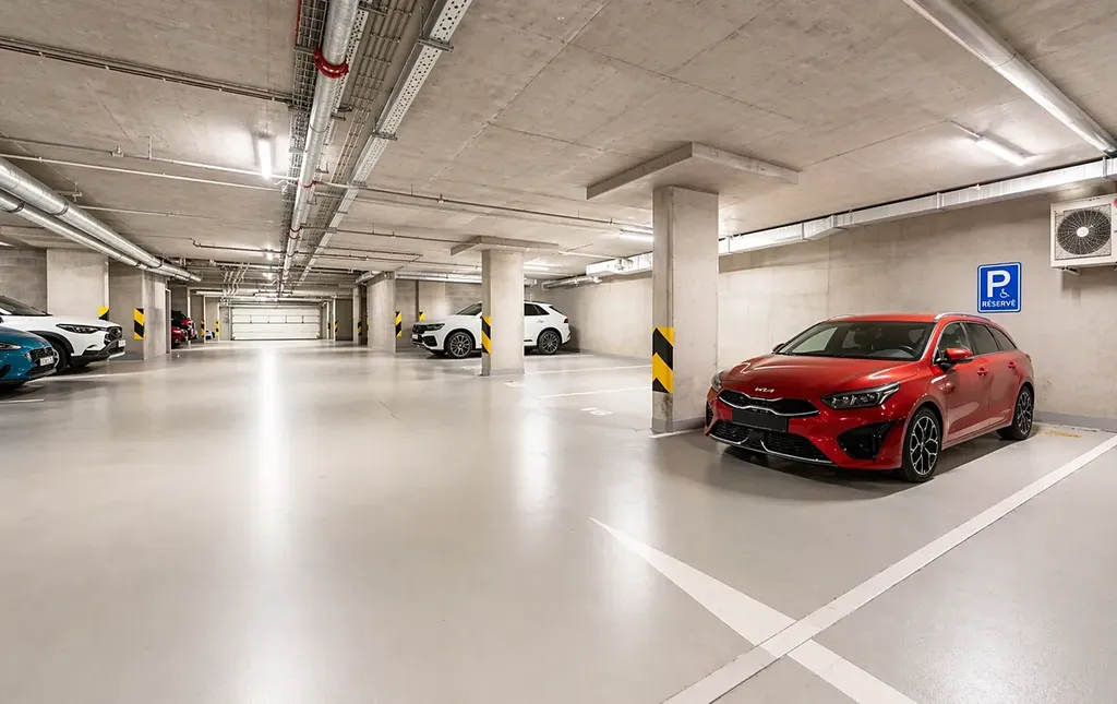 K bytu náleží velký zděný sklep. K bytu je dále možné dokoupit velké parkovací stání s výbornou polohou v garážích domu.