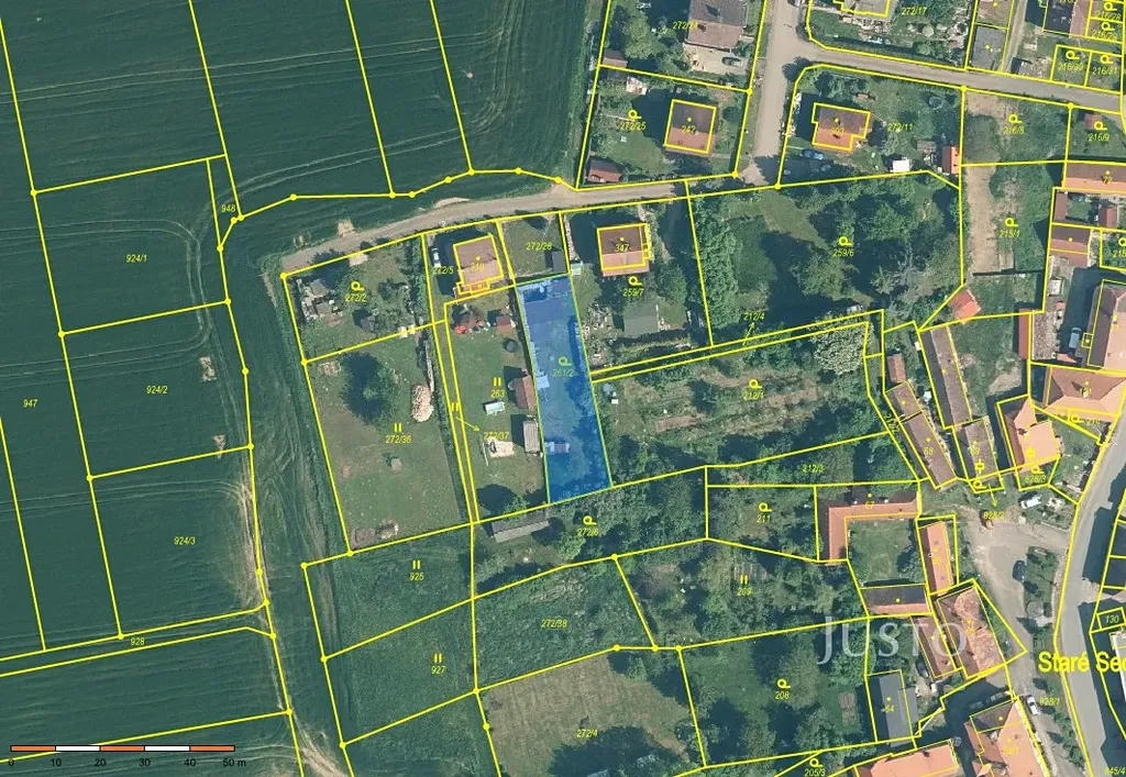 Na pozemku se nachází menší zahradní domek, který je předmětem samostatného řešení se sousedními vlastníky.