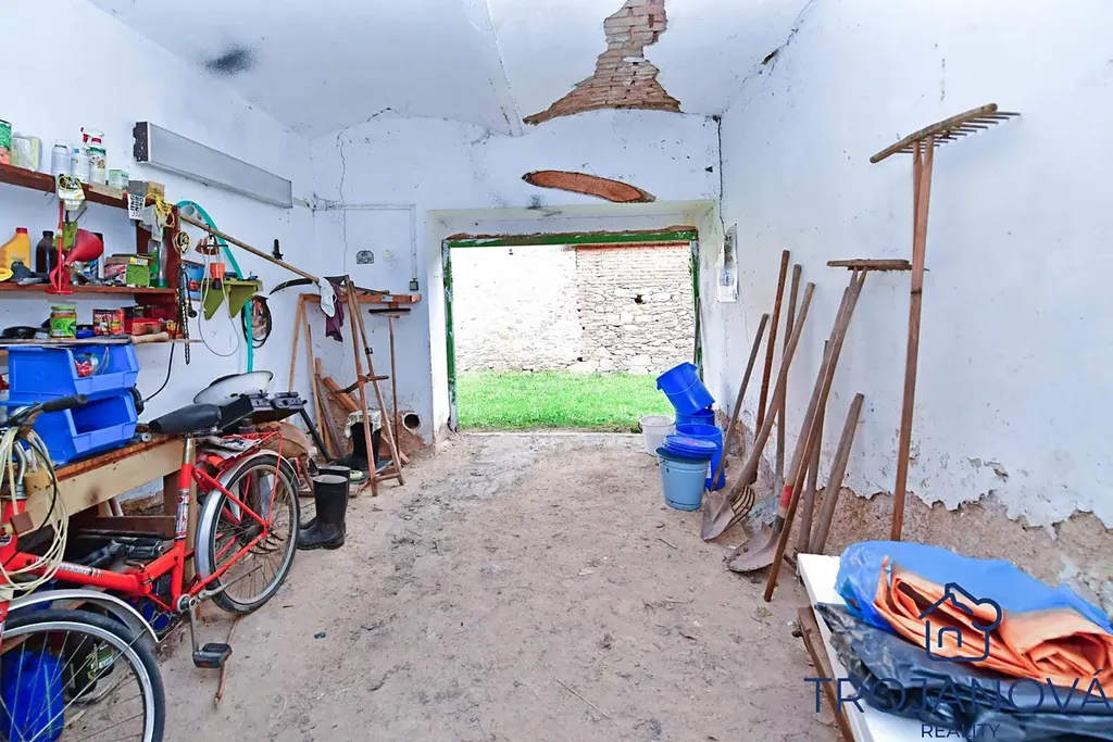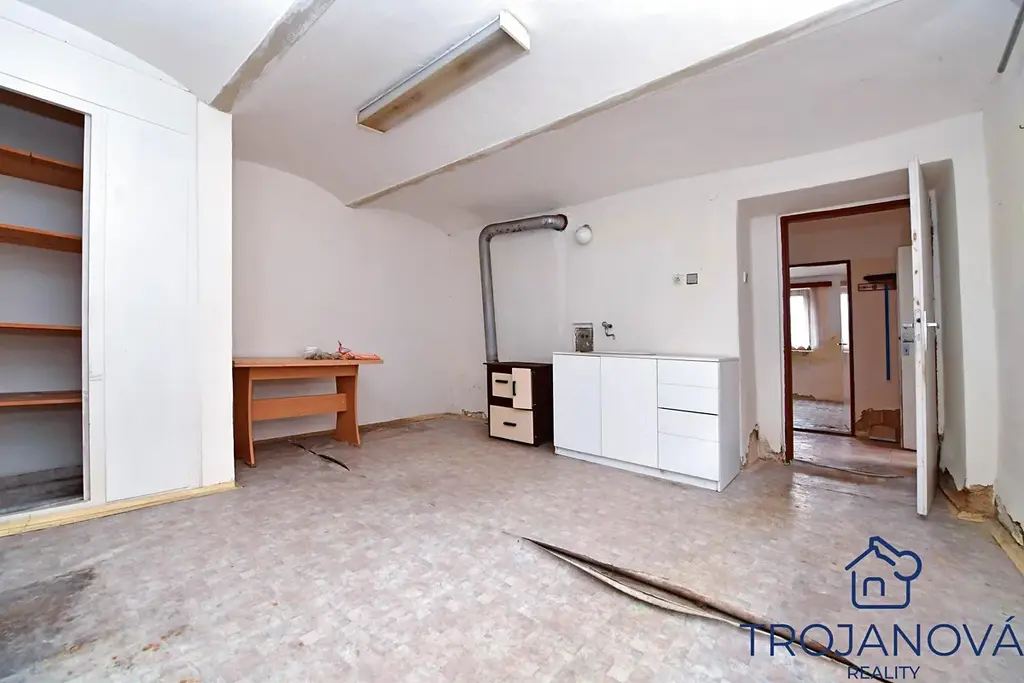 Stavba je vyklizená a připravená k okamžitému zahájení stavebních prací. Část oken již byla v minulosti vyměněna za dřevěná eurookna, zbytek zůstal v původním stavu. K domu náleží také integrovaná garáž, kterou lze využít i jako dílnu. Vysoký krov a prostorná půda navíc nabízejí možnost budoucí vestavby dalších obytných místností, čímž lze užitnou plochu domu výrazně rozšířit.