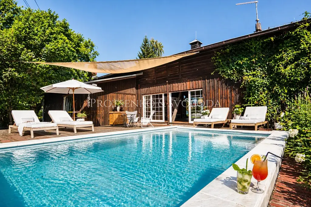 Za stodolou se nachází bazén, umístěný tak, aby poskytoval maximální soukromí a klid.