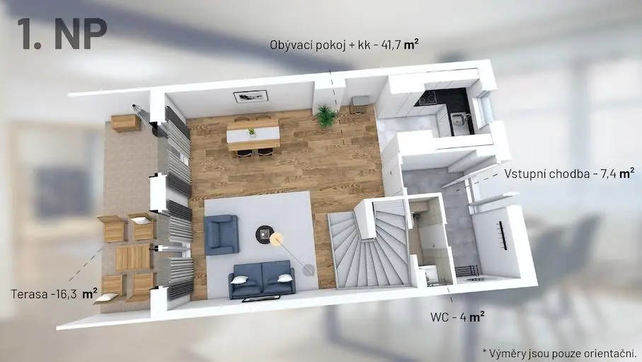 Novostavba z roku 2017 nabízí promyšlenou dispozici pro každodenní život. V přízemí najdete obývací pokoj s kuchyní a přímým vstupem na zahradu s krytou terasou. V patře pak klidovou zónu ložnici s vlastní šatnou a dva samostatné pokoje.
