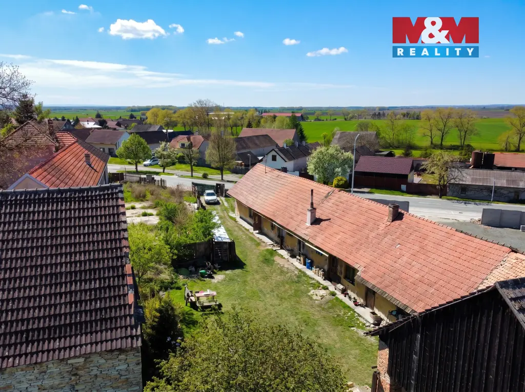 Na dům navazuje velká stodola, která nabízí široké možnosti využití, například pro spojení bydlení s podnikáním, dílnu nebo sklad.