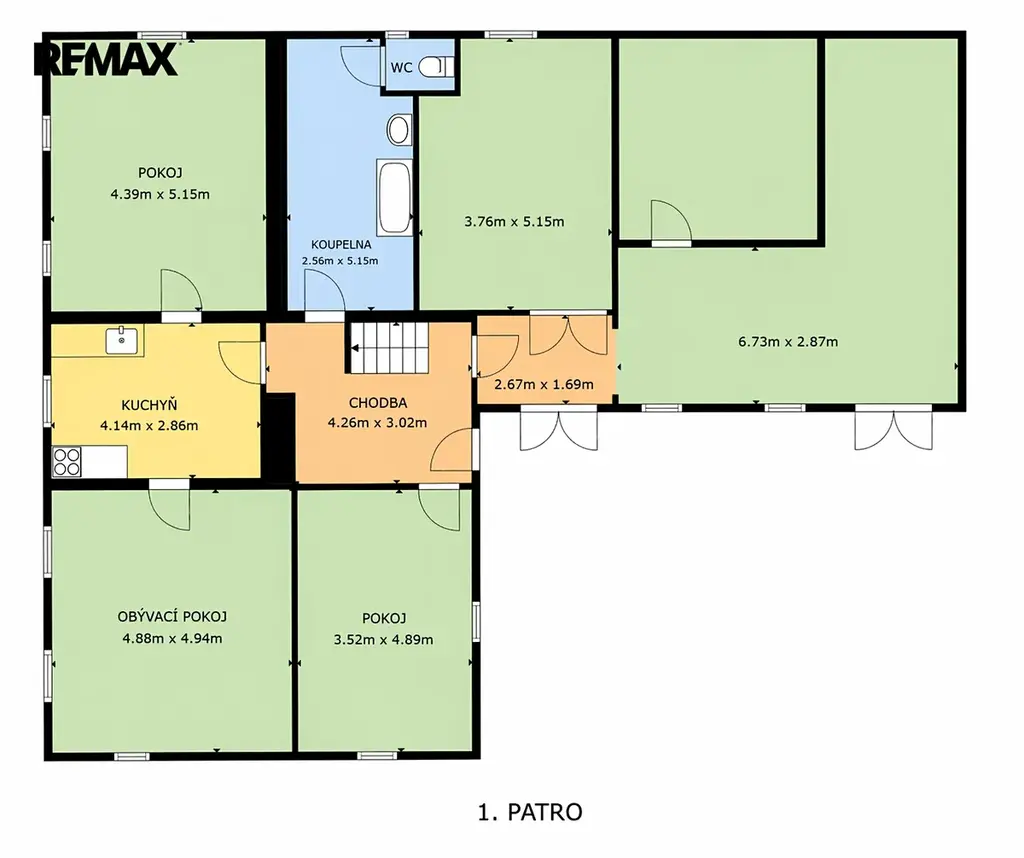 • Přízemí: chodba, kuchyně, obývací pokoj, ložnice, pokoj, koupelna s vanou a WC