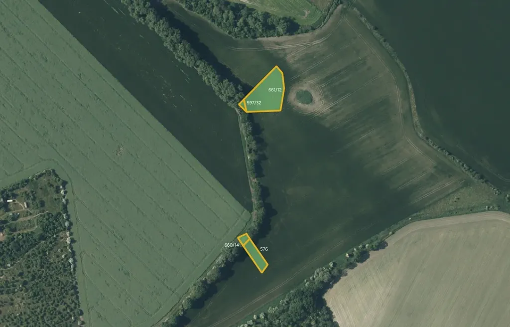 Předmětem prodeje jsou následující parcely: 100/6, 105, 431, 540, 576, 597/32, 660/14, 661/12, 689/3, 769 a 816/42
