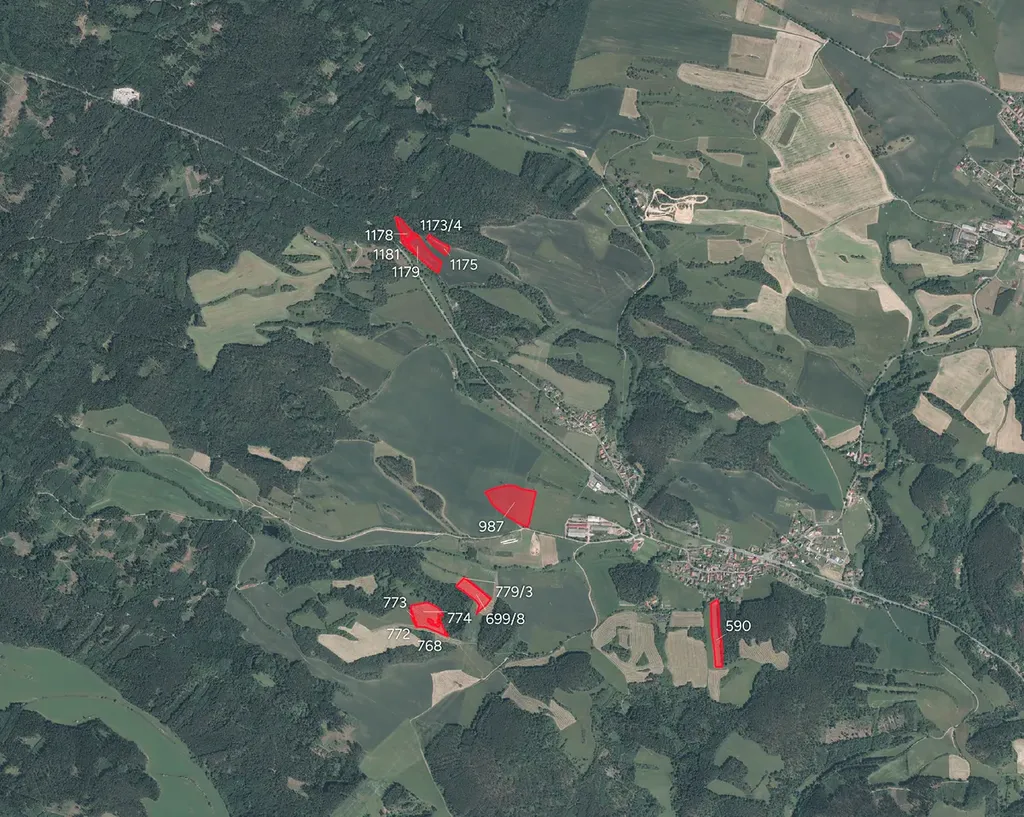 -> parc. č. 590, 699/8, 768, 771, 772, 773, 774, 779/3, 833/39, 987, 1173/4, 1175, 1178, 1179, 1181 (LV 469)