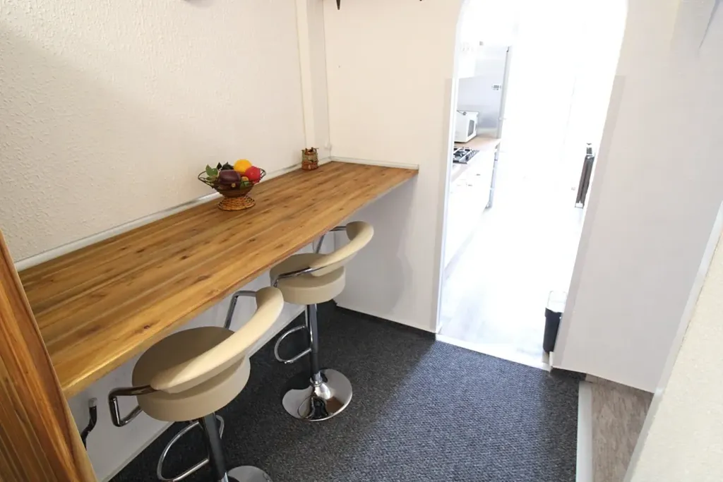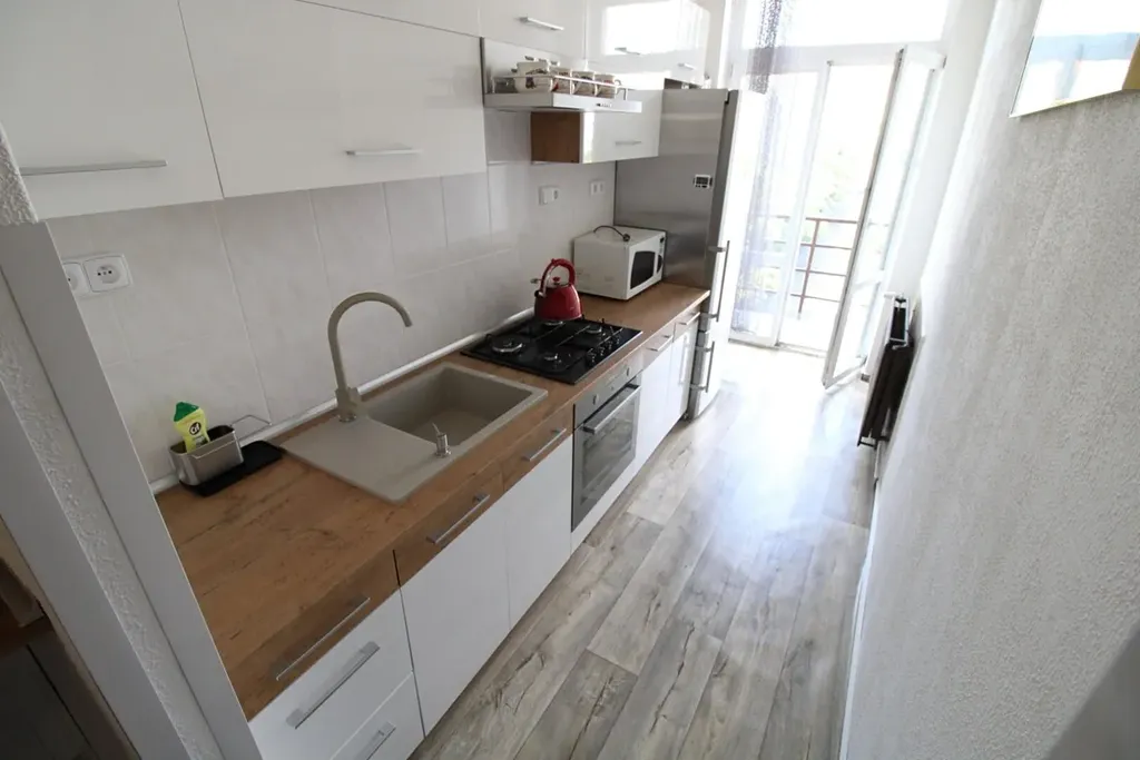 Byt je plně vybaven – součástí pronájmu je nábytek dle fotografií, kompletně zařízená kuchyňská linka včetně spotřebičů a pračka. Vytápění zajišťuje vlastní plynový kotel, což umožňuje regulovat náklady i tepelný komfort podle vlastních potřeb.