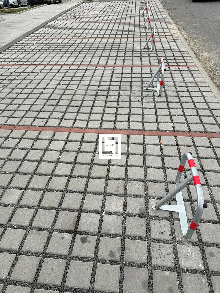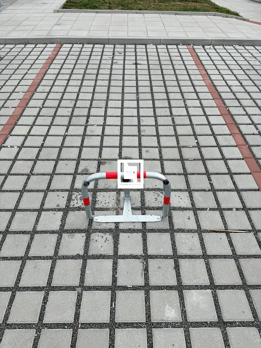 Každé stání je vybaveno kovovou uzamykatelnou vzpěrou, která zajišťuje jeho bezpečné a výhradní užívání.