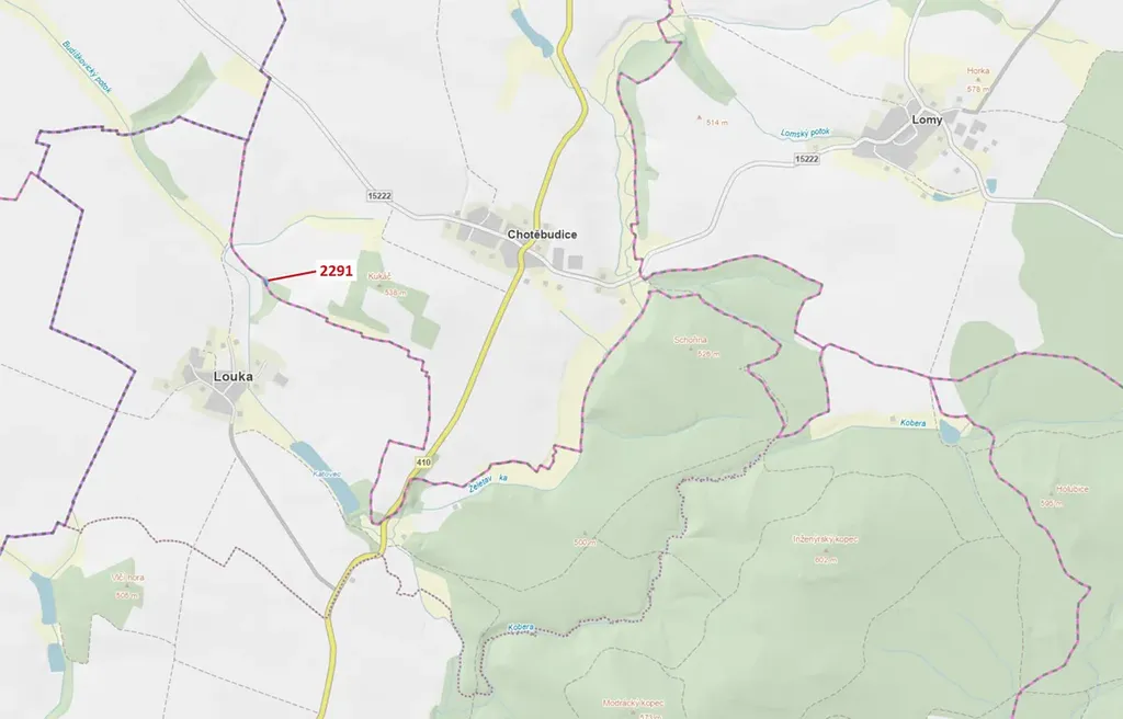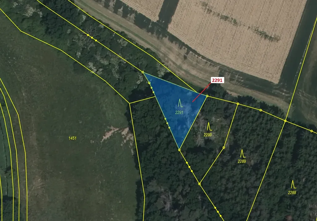 Lesní pozemek o výměře 529 m2, parcelní číslo 2291, podíl 1/1, katastrální území Chotěbudice, obec Chotěbudice, obec s rozšířenou působností Moravské Budějovice, okres Třebíč, Kraj Vysočina.