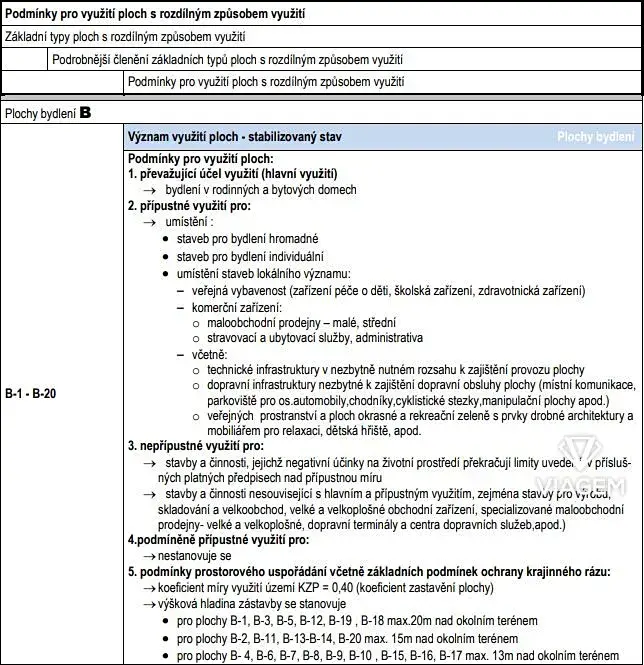 - koeficient míry využití území KZP = 0,40 (koeficient zastavění plochy)