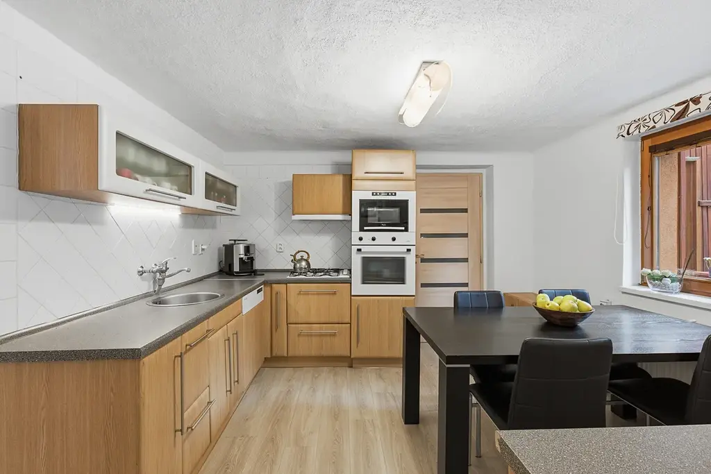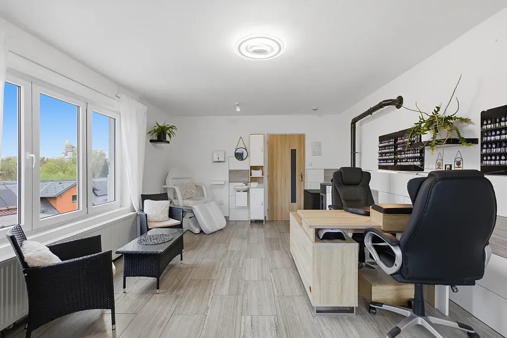 • Horní byt (2+1 | 114 m²): Velkorysý byt se vstupem na půdu. Tato jednotka je navíc oficiálně zkolaudována pro kosmetické služby (manikúra, pedikúra apod.). Můžete zde tedy okamžitě začít provozovat své podnikání bez nutnosti běhání po úřadech.