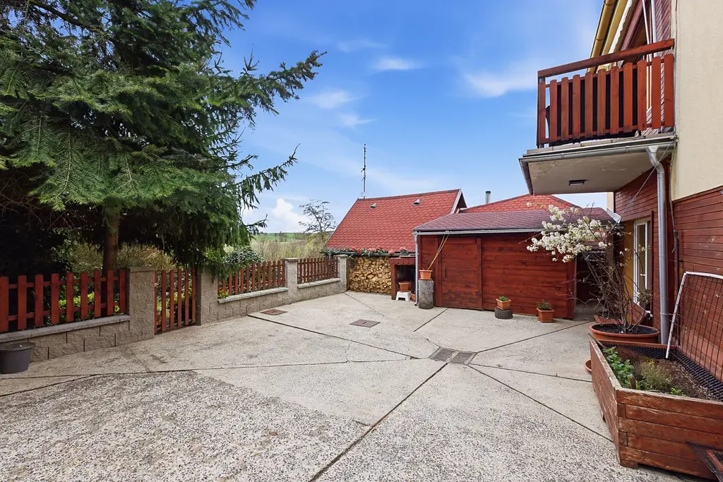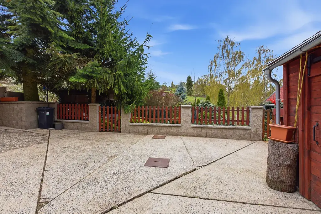 K domu náleží pozemek o rozloze 360 m², který je navržen pro radost, nikoliv pro dřinu. Najdete zde vzrostlou zeleň, která zajišťuje příjemné soukromí a klid od okolí. Pergolu, ideální pro venkovní posezení a odpočinek.