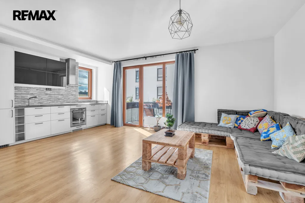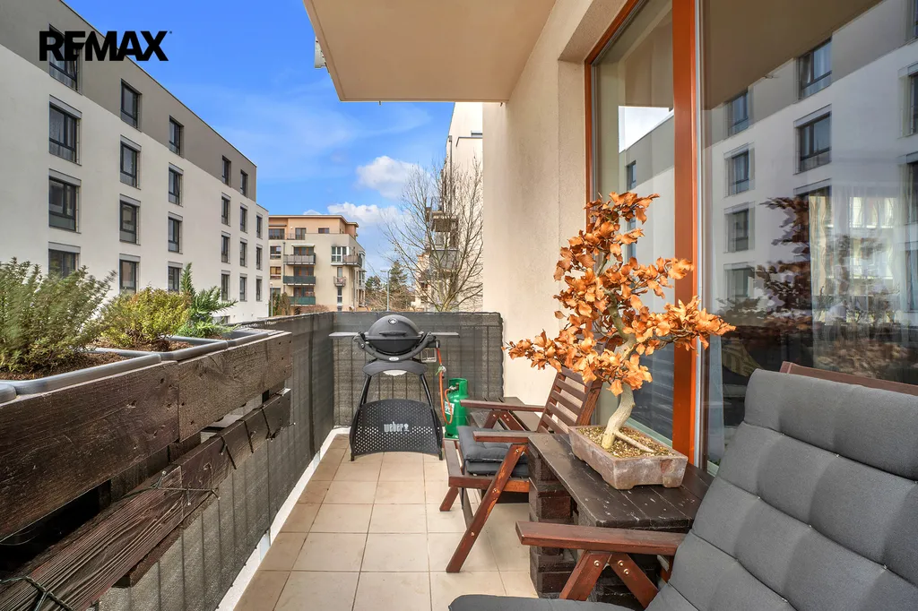 Na bytě oceníte především jeho příjemnou světlost, praktickou dispozici a velikost jednotlivých pokojů. Předsíň je vybavená na míru stavěnou velkorysou šatní skříni, která zároveň nabízí mnoho úložného prostoru a také velké zrcadlo. Obývací pokoj s kuchyňskou linkou nabízí vstup na balkon. Kuchyňská linka je vybavená spotřebiči (vestavena kombinovaná chladnička, indukční deska, elektrická horkovzdušná trouba, myčka nádobí, digestoř). Ložnice má přímý vstup do hlavní koupelny s toaletou. Byt dále disponuje druhou toaletou přístupnou z předsíně. Ta poslouží nejen návštěvám, které nemusí vstupovat do hlavní koupelny, nabízí také další úložné prostory a místo pro pračku se sušičkou.