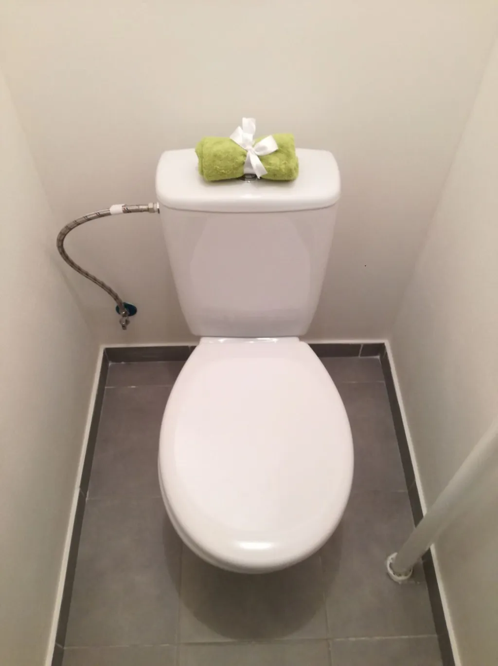 Koupelna disponuje vanou a umyvadlem, toaleta je odděleně.