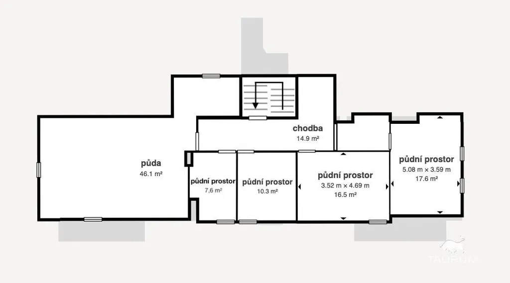 Dům o celkové užitné ploše 383 m² stojí na pozemku o rozloze 1.027 m² a aktuálně obsahuje čtyři bytové jednotky. Objekt má tři nadzemní podlaží a je částečně podsklepený (sklep o výměře cca 13 m²). Jedna z bytových jednotek navíc disponuje balkonem o velikosti 8 m². Další potenciál skýtá půdní prostor, který je možné přestavět a vybudovat zde až dvě další bytové jednotky – půda je přístupná po schodišti.