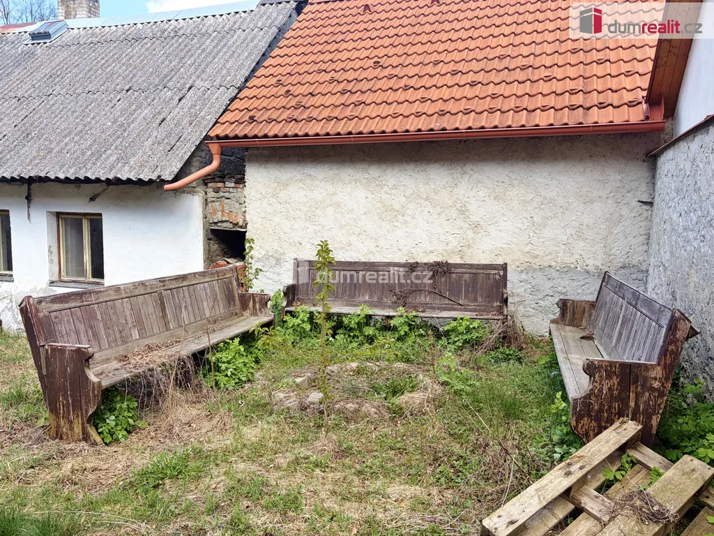 zemědělské usedlosti v půvabné, klidné a pečlivě udržované obci s rybníčkem, uprostřed polí a lesů. Usedlost sestávající ze dvou budov a zeleného dvora leží ve vyvýšené části obce s výhledem do krajiny.. První budova je určena k bydlení - prostorná ložnice, kuchyně, samostatná toaleta, koupelna se sprchovým koutem a opravdu velký obývací pokoj se schodištěm do podkroví, kde se nalézají další dvě malé ložnice a velká půda. Druhá budova je částečné též využitelná jako obytná - jsou zde dvě malé ložnice. Převážně však slouží jako technické zázemí - skládky, stodola, zastřešené posezení. Dvůr je zatravněný, podlouhlý a stupňovitý s odděleným prostorem pro venkovní posezení u táborového ohně. Uzavřený dvůr nabízí velkou míru soukromí.