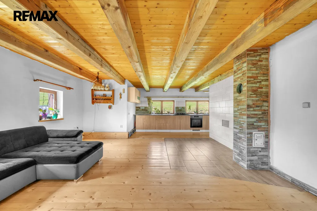 V Rokytnici v Orlických horách, místní části Prostřední Rokytnice se uprostřed pastvin nachází pozemek o celkové výměře 1.873 m2 s rodinným domem, který je současnými majiteli využíván jako chalupa pro rekreaci. Kolaudace stavby proběhla v roce 2015. V tuto chvíli je obyvatelné 1. nadzemní podlaží. Nalezneme zde prostorný obývací pokoj s kuchyňským koutem, pokoj využívaný jako hala, ložnici, zádveří, koupelnu a dílnu se skladem pro nářadí. Podkroví v tuto chvíli slouží jako půda, je s ní však počítáno pro vybudování obytných místností.