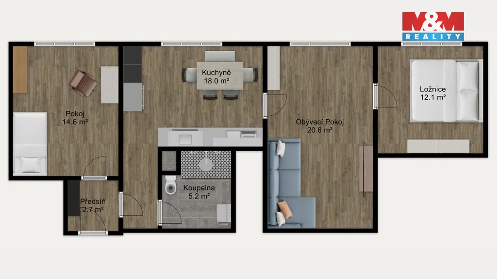 Byt je ve velmi dobrém stavu, prošel rekonstrukcí v roce 2022, díky čemuž je připraven k okamžitému bydlení. Dispozice bytu nabízí praktické uspořádání: kuchyni s kuchyňskou linkou, obývací pokoj, dva samostatné pokoje, koupelnu se sprchovým koutem a toaletou.