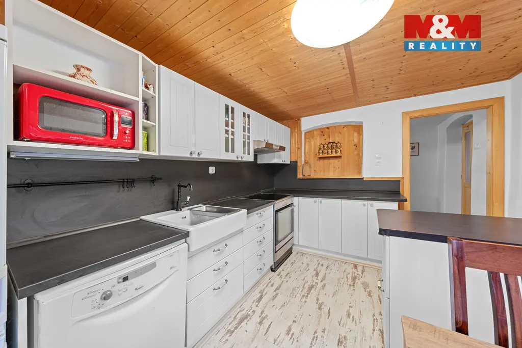 Prodej prostorného rodinného domu o užitné ploše 164 m² na pozemku 1 364 m² v klidné lokalitě Bynovce u Děčína, který je ideální pro rodinné bydlení, nebo kombinaci bydlení a práce z domova. Dům je ve velmi pěkném stavu a nabízí 7 místností, samostatnou kuchyň s moderní rohovou linkou a v přízemí nalezneme koupelnu s velkorysým sprchovým koutem. Jedná se o samostatně stojící dům se smíšenou konstrukcí, s jedním podzemním a třemi nadzemními podlažími. Půda nabízí dostatek úložného prostoru a v malém sklepě domu je studánka s vyvěrajícím pramenem. Součástí prodeje je udržovaná okrasná zahrada s ovocnými stromy, ideální pro relax i rodinné posezení. Na zahradě se nachází také praktická kůlna s místem pro auto a dostatečným úložným prostorem, garáž a bazén. Celá zahrada je oplocená, nabízí klid, soukromí a blízkost přírody, zároveň s dobrou dostupností do Děčína, kde jste za 10 minut. Pokud Vás tato nemovitost zajímá, kontaktujte makléře a domluvte si prohlídku.