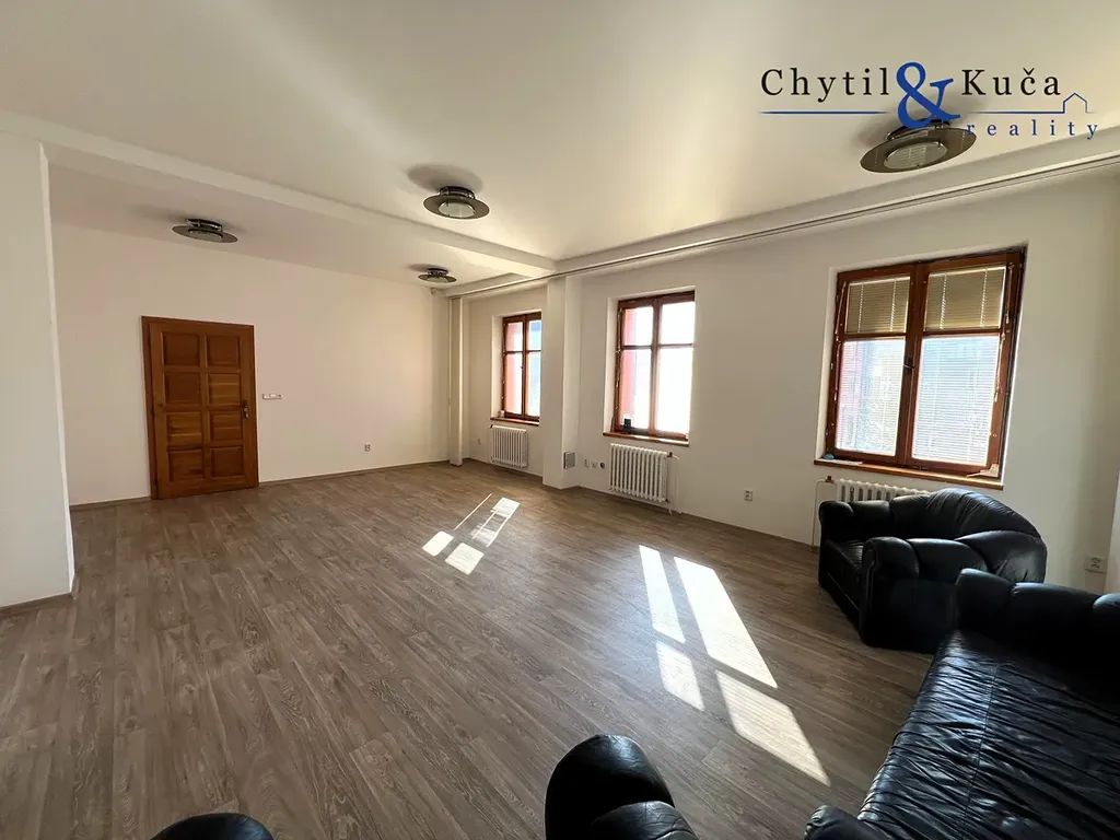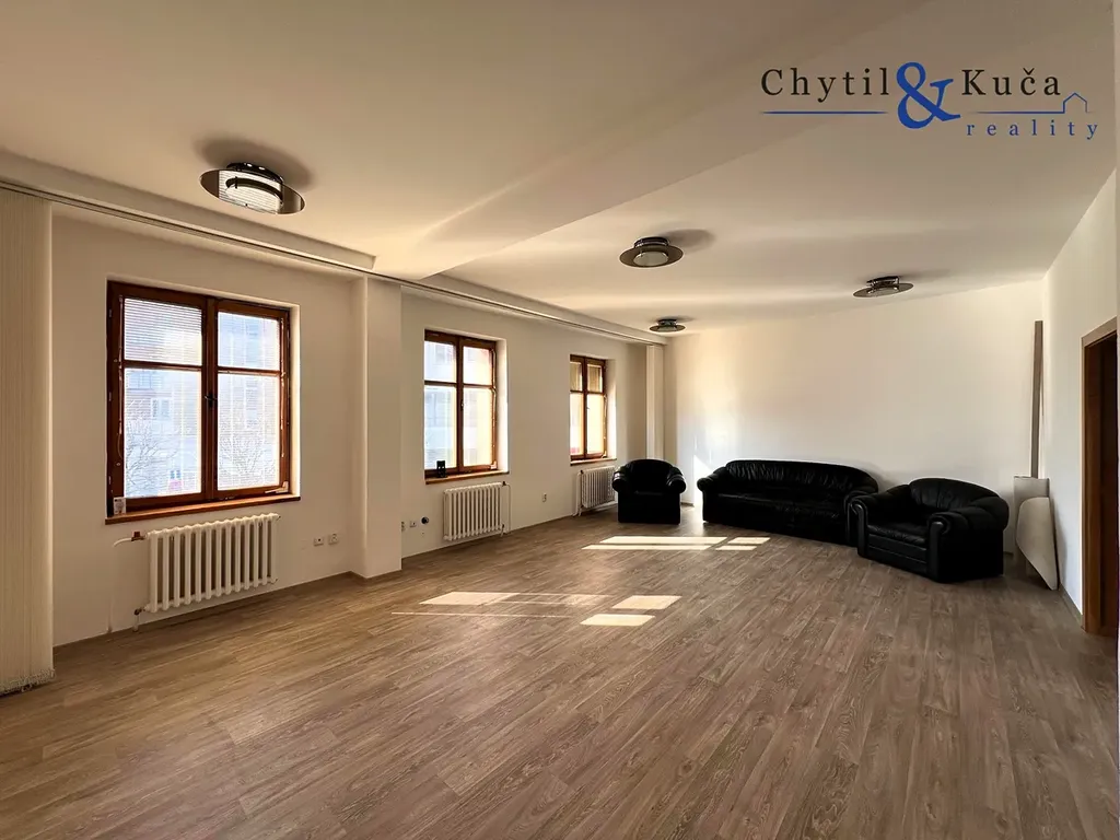 Realitní kancelář Chytil & Kuča reality Vám nabízí k pronájmu kancelářský / obchodní prostor o výměře 110 m2, který se nachází v centru města na Žerotínově náměstí v Přerově. Díky své atraktivní, frekventované poloze je prostor vhodný jak pro pobočku firmy, kanceláře apod. K dispozici je celé 2. NP budovy, které disponuje dvěma prostornými kancelářemi, které jsou vzájemně průchozí a přístupné jednotlivě také z hlavní chodby. Na jeden kancelářský prostor navazuje taktéž menší, vybavená kuchyňka. Okna těchto prostor jsou orientovány do uliční části. Do dvorní části jsou pak orientovány zbylé dva menší prostory, přičemž na jeden z nich navazuje prostorná terasa. Terasa je taktéž přístupná z hlavní chodby. Součástí pronájmu je i koupelna se sprchovým koutem a samostatné WC. Topení je na plyn a ohřev vody na plyn. Měsíční nájem činí 16.000 Kč / měsíc + energie ( elektřina, plyn ). Energie si přepisuje nájemce na svou osobu a dodávky a platby si řeší na přímo s dodavateli těchto energií. Možnost dohody i na pronájmu zahrady ve dvorním traktu. Parkování je možné na přilehlém náměstí. Doporučujeme prohlídku. Pro více informací a pro případnou prohlídku kanceláře neváhejte kontaktovat makléře.