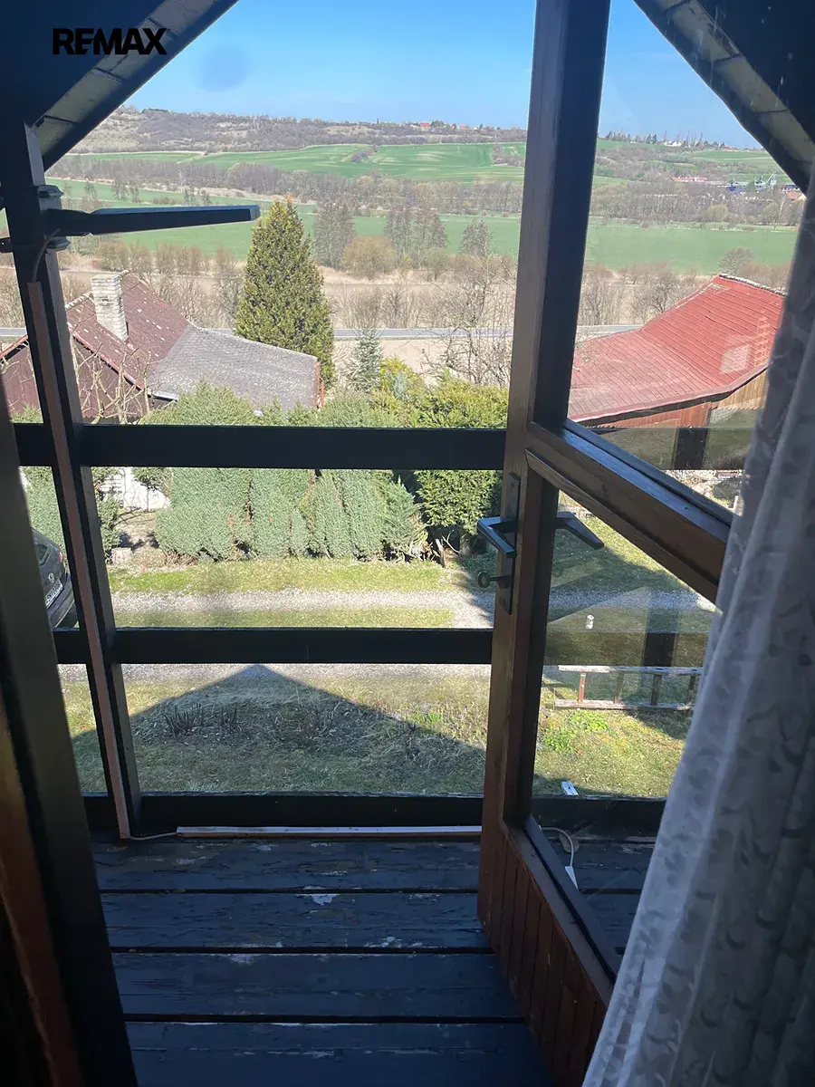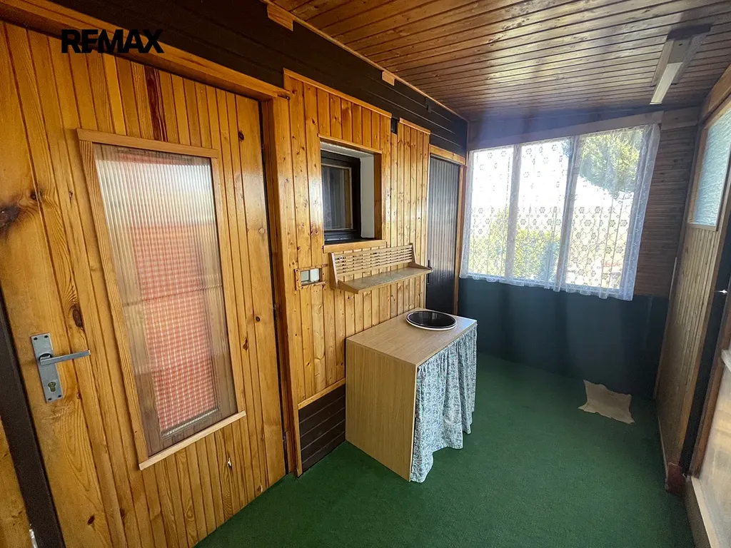 Jedná se o zděnou, podsklepenou chatku s užitnou plochou 48m2 na vlastním pozemku o rozloze 406m2. V přízemí chatky je obývací pokoj s vybavenou kuchyňkou a krbovými kamny, TV. Z této místnosti vedou schůdky do horního patra, které je využíváno prioritně jako ložnice. Z balkónu je krásný výhled na okolní krajinu.