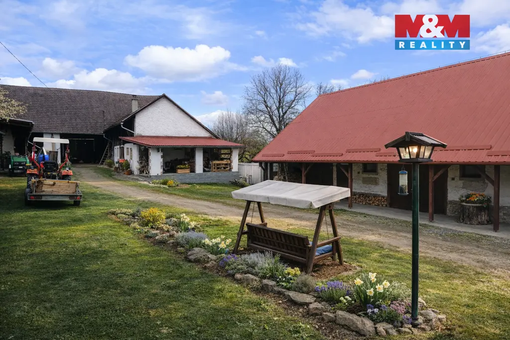 Na pozemku se dále nacházejí hospodářské stavby – velká stodola, chlévy a maštal pro hospodářská zvířata, což z této nemovitosti činí skvělou volbu nejen pro rodinné bydlení, ale i pro podnikání či menší hospodářství.