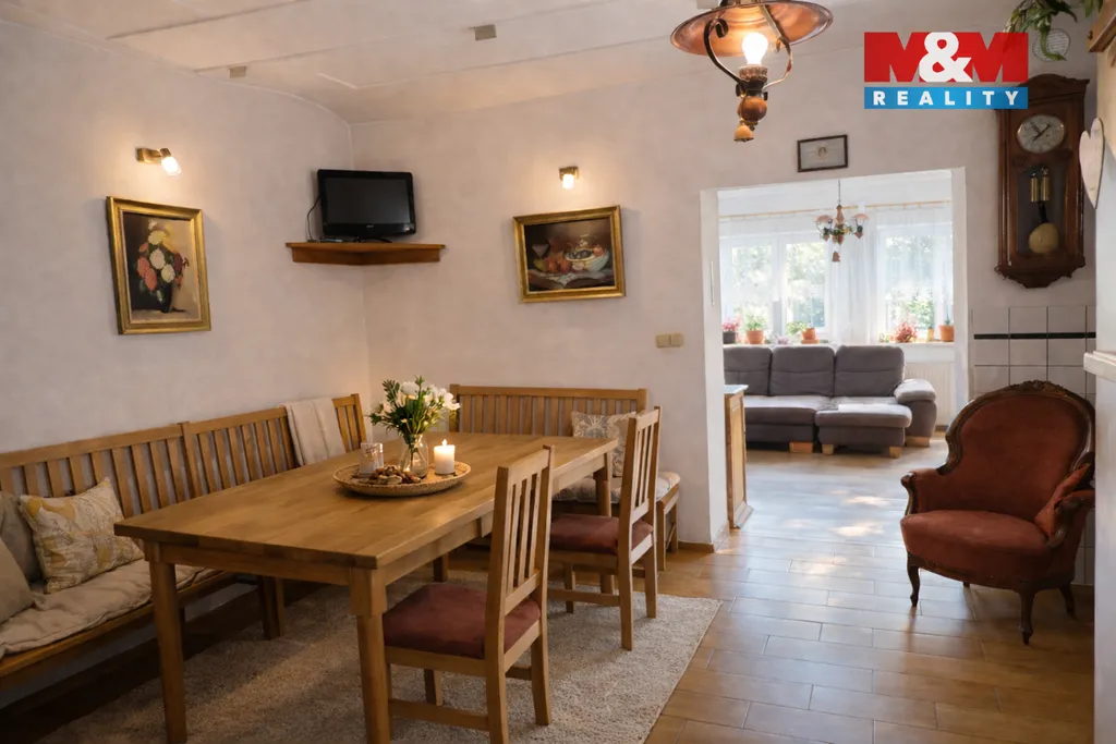 Samostatně stojící cihlový dům o užitné ploše 158 m² disponuje jedním nadzemním a jedním podzemním podlažím. Nabízí celkem 5 obytných místnosti, kompletní příslušenství, velké technické zázemí, sklepy, spíže a dvě garáže ve výstavbě.