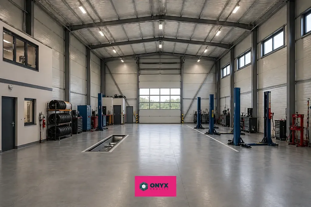 Vjezd do haly je umožněn velkými sekčními vraty, která umožňují vjezd i výjezd nákladních vozidel. Těmito parametry je tato stavba předurčena např. pro pneuservis nákladních vozidel resp. jakoukoliv výrobu.