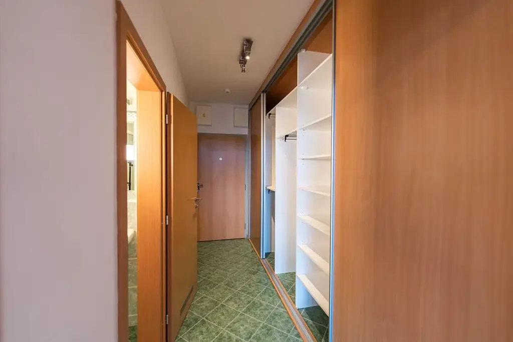 V předsíni vestavěná multifunkční šatní skříň.