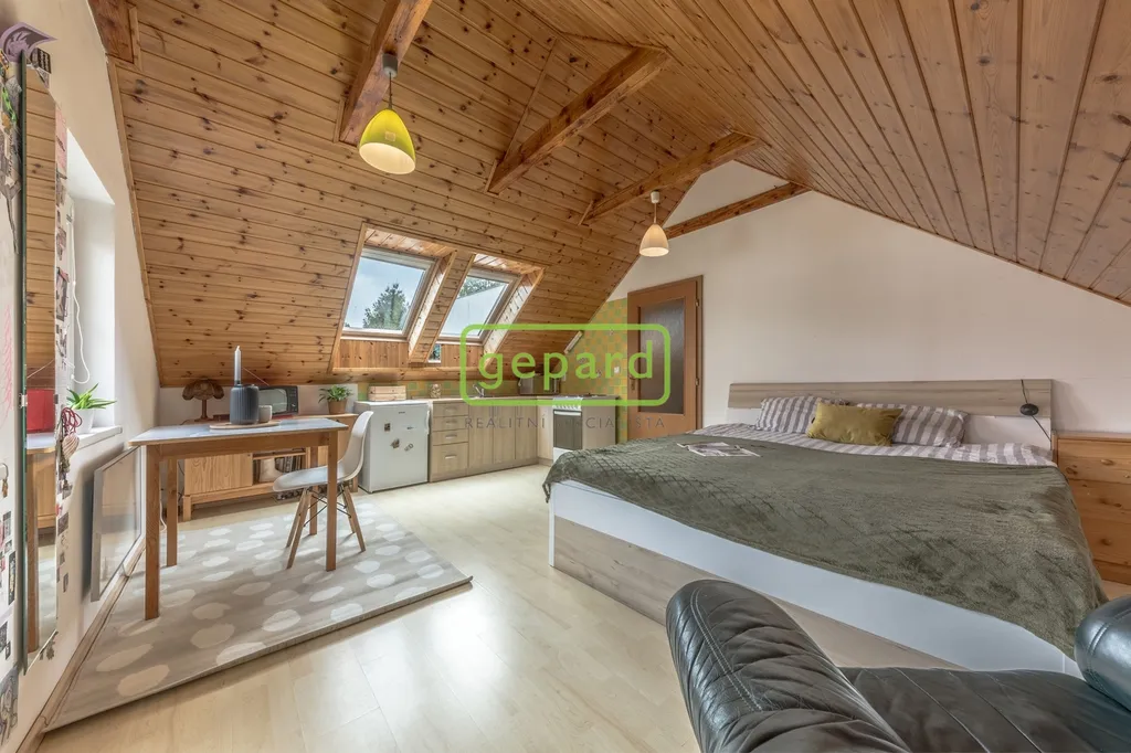 plně vybavená letní kuchyně – ideální na grilování, oslavy nebo letní večery a v patře samostatná garsoniéra (1+kk, 29,2 m²) s vlastním sociálním zázemím.