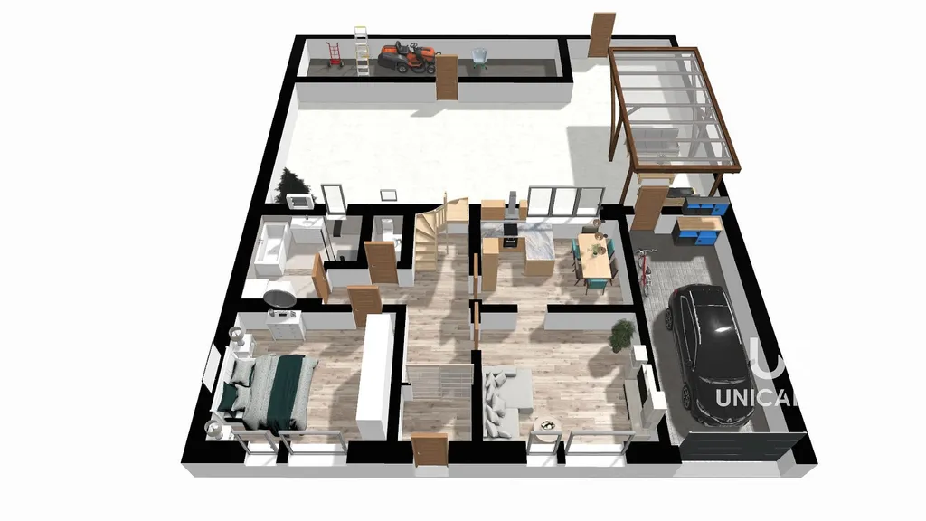 Přes uzavřený dvůr se dostanete do dílny a udržovanou zahradu, která je ideální pro odpočinek, pro pohodlnější pěstování zeleniny či ovoce vám poslouží vystavěné nadzemní záhony.