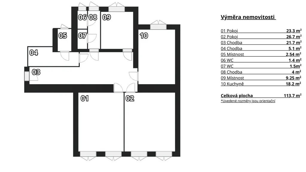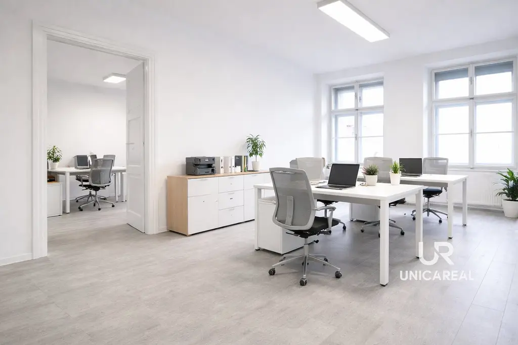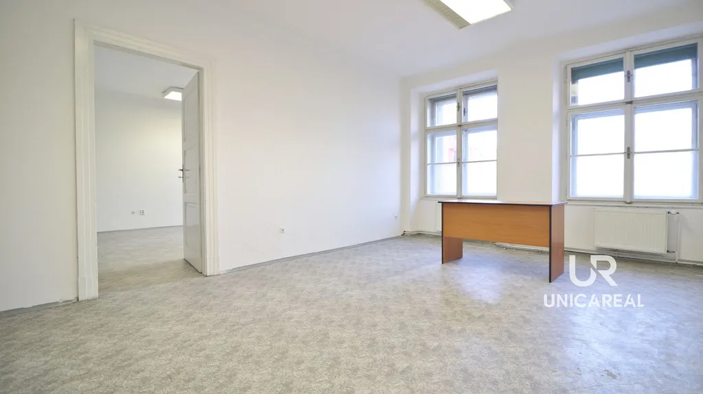 Nebytový prostor se nachází v prvním nadzemním podlaží bytového domu a disponuje čtyřmi samostatnými místnostmi s okny, které poskytují dostatek denního světla, prostornou chodbou, se dvěma toaletami a technickou místností.