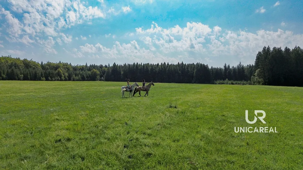 Součástí jsou rozsáhlé, na sebe navazující pozemky (trvalý tavní porost + zahrada) sloužící v současné době pro chov koní a dle územního plánu se nacházejí v zastavitelné oblasti. Pozemky jsou rovinaté až mírně svažité, z jedné strany hraničí s obecní komunikací a z druhé strany přecházejí v louky a následně lesy Národní přírodní rezervace Rohová.