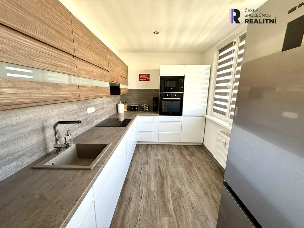 Interiér je světlý, vzdušný a vkusně sladěný. Obývací pokoj poskytuje příjemné zázemí pro relaxaci i jídelní kout. Samostatná kuchyň je vybavena moderní kuchyňskou linkou na míru s dostatkem pracovního i úložného prostoru. Ložnice je prostorná a nabízí praktickou vestavěnou skříň.