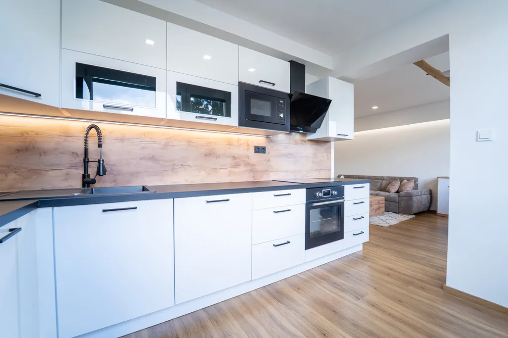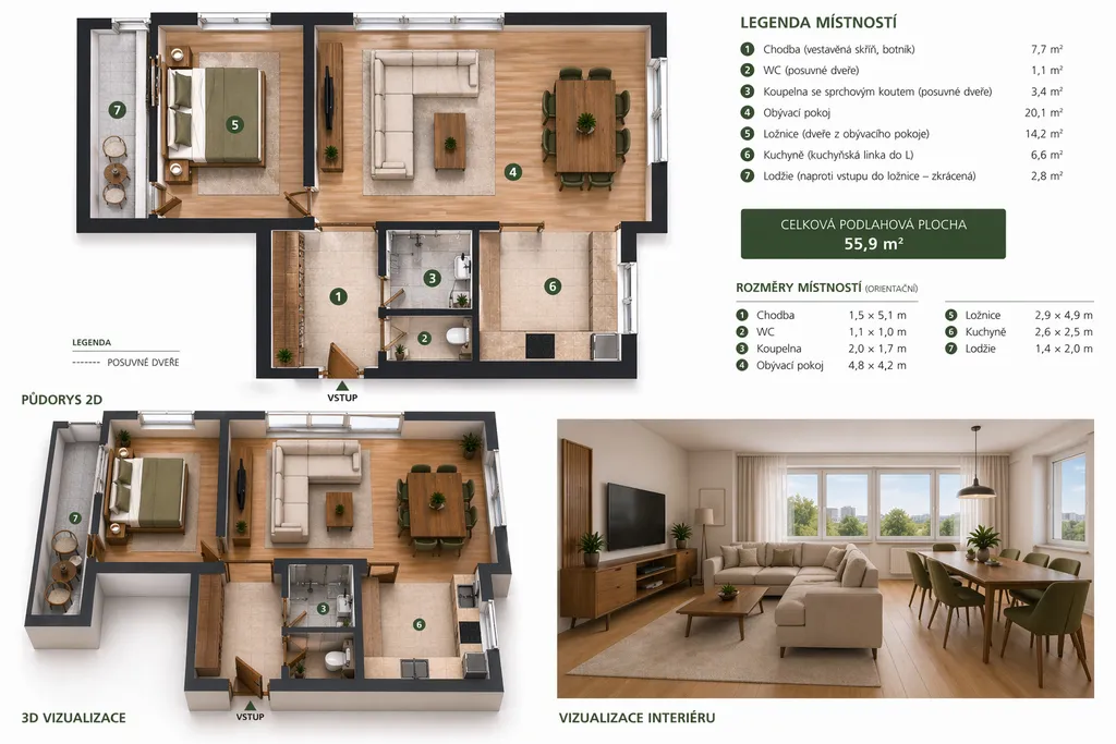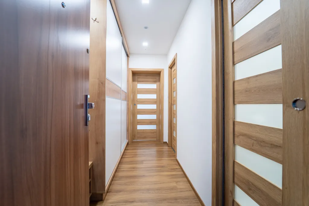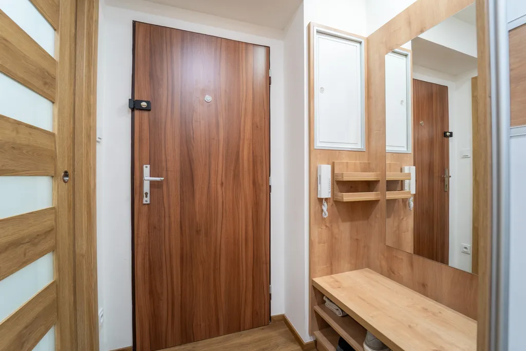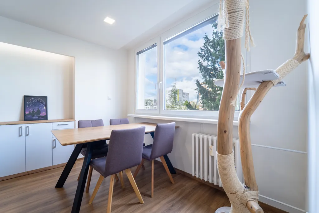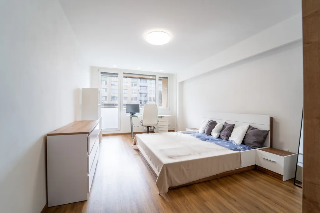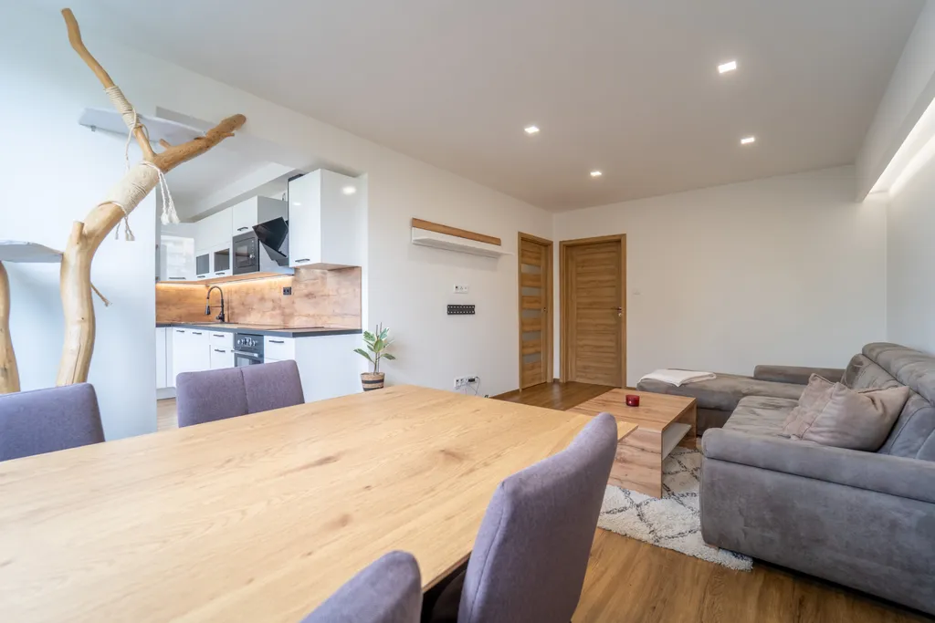 Byt prošel v roce 2021 kompletní rekonstrukcí (nové rozvody elektřiny, vody i odpadů, nové příčky, stropní podhledy s izolací). V obytných místnostech je jednotná vinylová podlaha, v předsíni praktické vestavěné úložné prostory s podsvícením. Kuchyňská linka je plně vybavena spotřebiči (lednice, trouba, indukční deska, myčka, mikrovlnná trouba). Z ložnice je vstup na zasklenou lodžii.