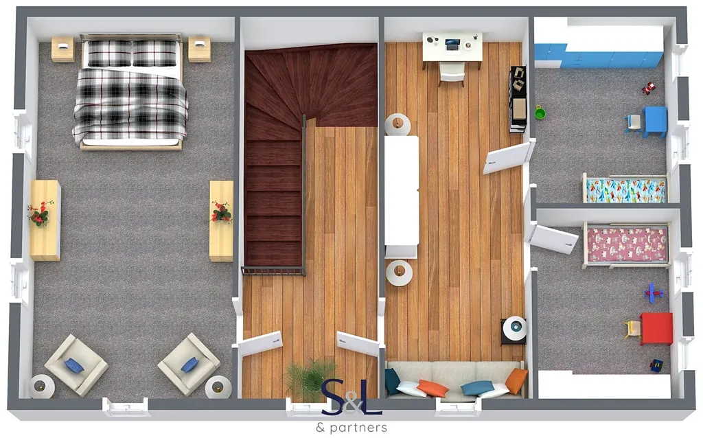 Chalupa nabízí užitnou plochu cca 128 m² + terasu o velikosti cca 22 m², a stojí na rozlehlém pozemku o velikosti 1.190 m². Vstupní patro tvoří předsíň, obytná místnost s kuchyňským koutem a krbovými kamny, ložnička a koupelna s toaletou. V patře najdete prostornou ložnici, schodišťový prostor s hracím koutem, předpokoj s lůžky a dva útulné dětské pokoje v podkroví.
