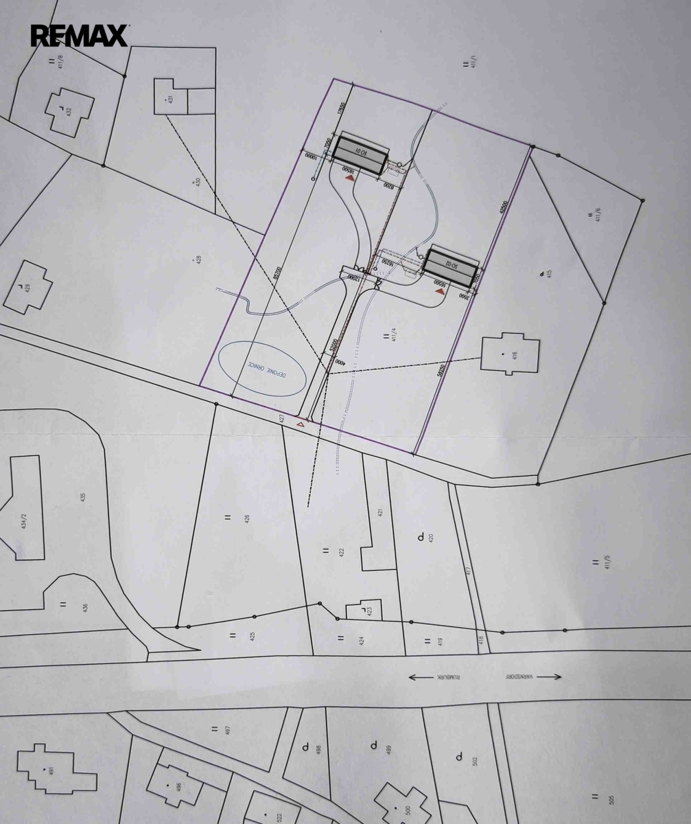 • Vyřízené územní povolení na stavbu 2 domů (je možné pouze 1 dům)