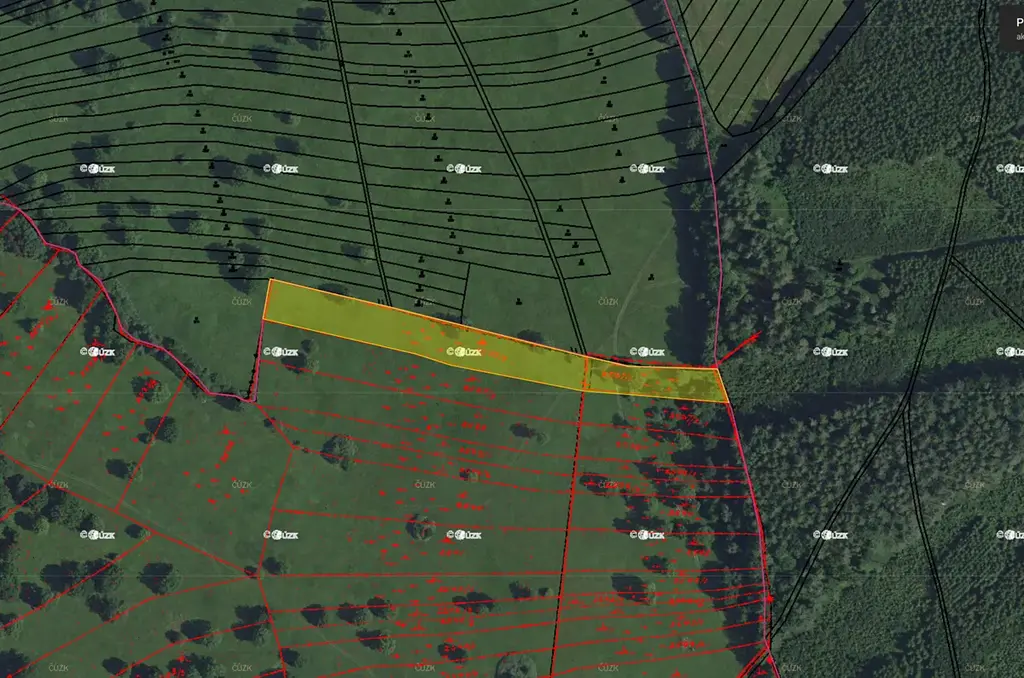 V katastrálním území probíhají komplexní pozemkové úpravy – uvedená výměra je po jejich dokončení. Nová parcelní čísla budou 7879 a 8180 (umístění je vyznačeno v přiložených obrázcích – černá hranice). Na vyžádání poskytneme více informací.
