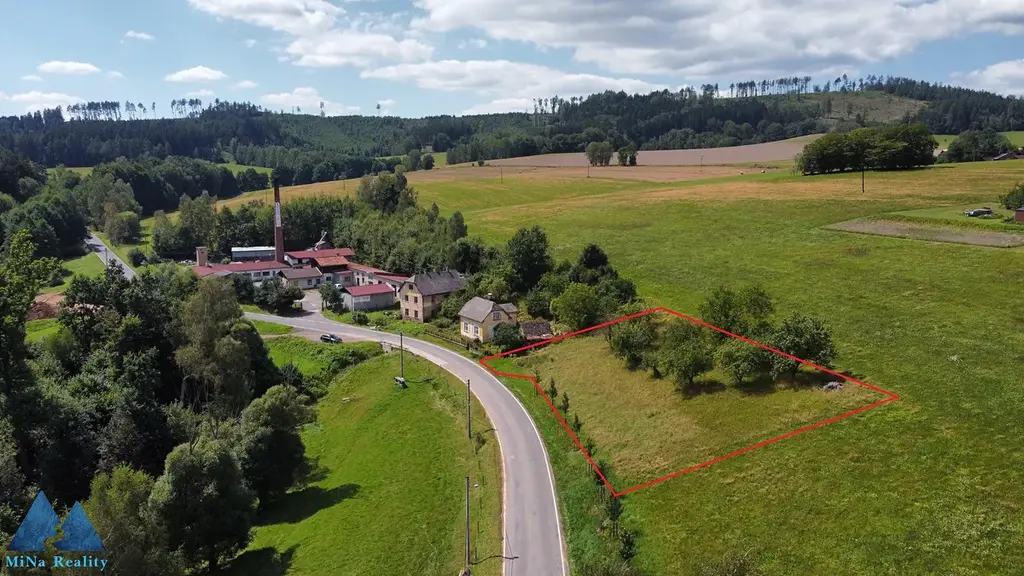 Pozemek je mírně svažitý a nachází se v klidné okrajové části obce.