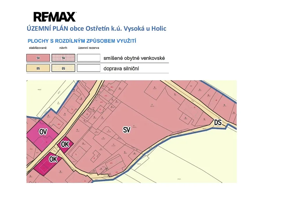 ✅ V územním plánu jde o plochy smíšené obytné – venkovské (SV). Plocha je určena zejména pro plochy smíšeného využití ve venkovských sídlech využívané zejména pro bydlení v rodinných domech