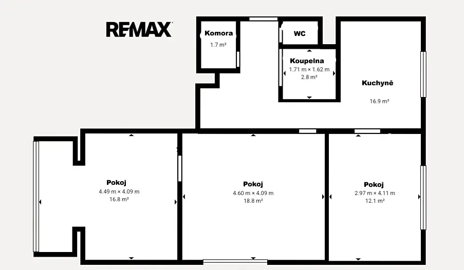 Celková výměra bytu je 70m², dále 1x sklep a možnost užívat společné prostory v domě.