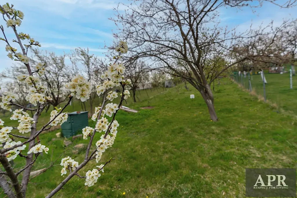 Na pozemku se nachází skleník, ovocné stromy a dostatek prostoru pro další využití (zahrada, relax, případná další stavba).