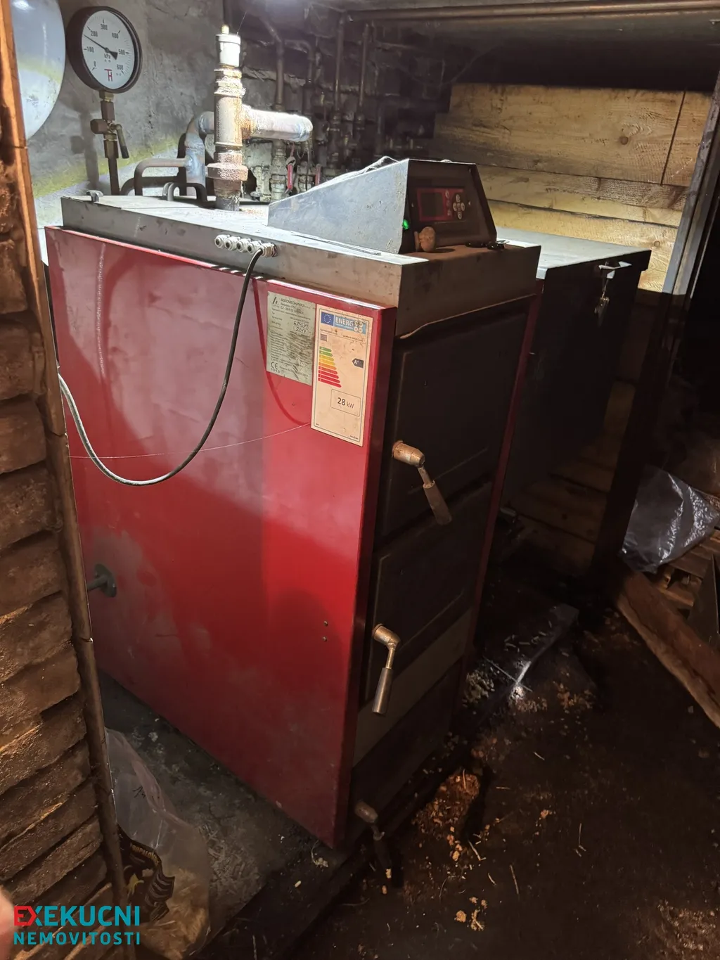 Stropy betonové, střech pálená taška, Topení plyn + kotel na tuhá paliva se zásobníkem, ohřev vody je kombinovaný boiler napojený na plynový kotel. Elektroinstalace v mědi, voda + odpad v plastu. Stavebně technicky je dům v pořádku. K domu náleží i kolna a kryté stání na auta viz fotografie.